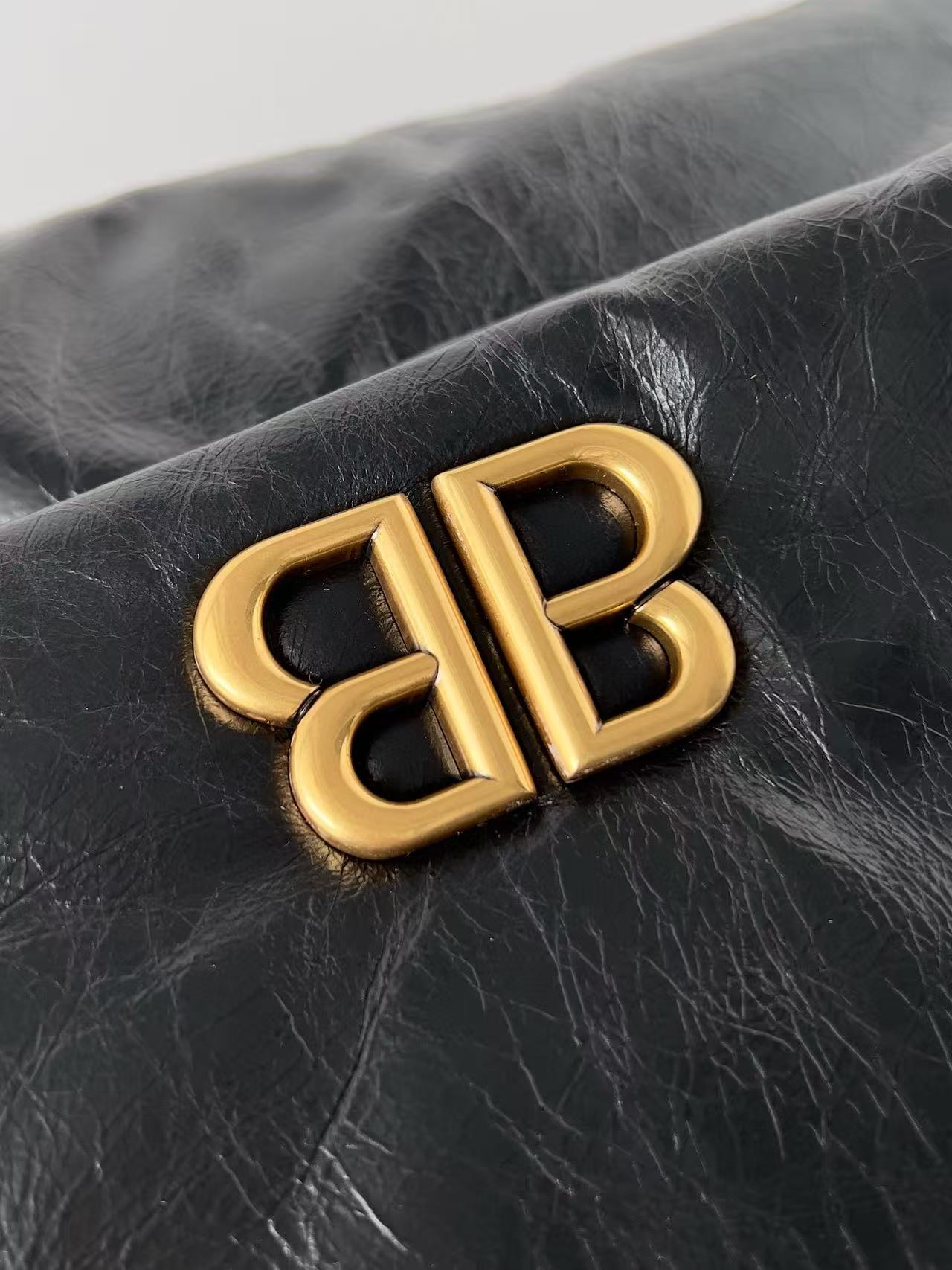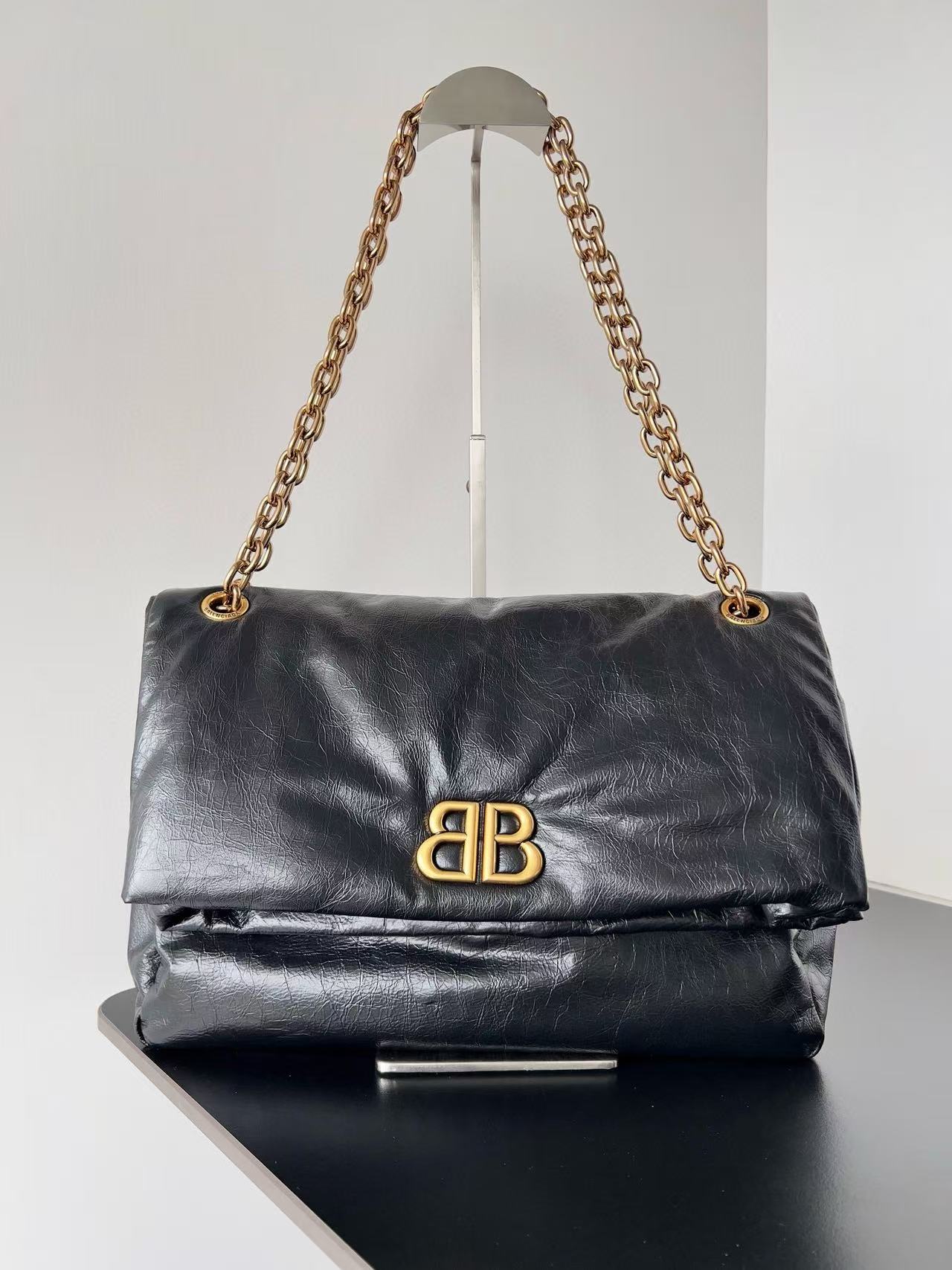 • Aged gold-finished Monaco BB logo hardware