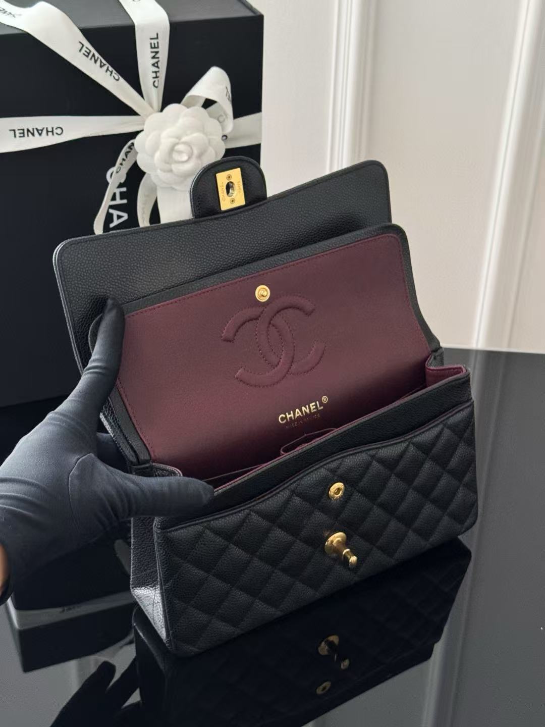 •Grained embossed cowhide leather
