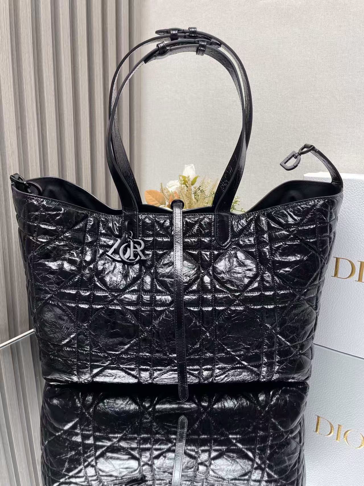 Holds two wallets, a phone, two cardholders, sunglasses, and lipstick