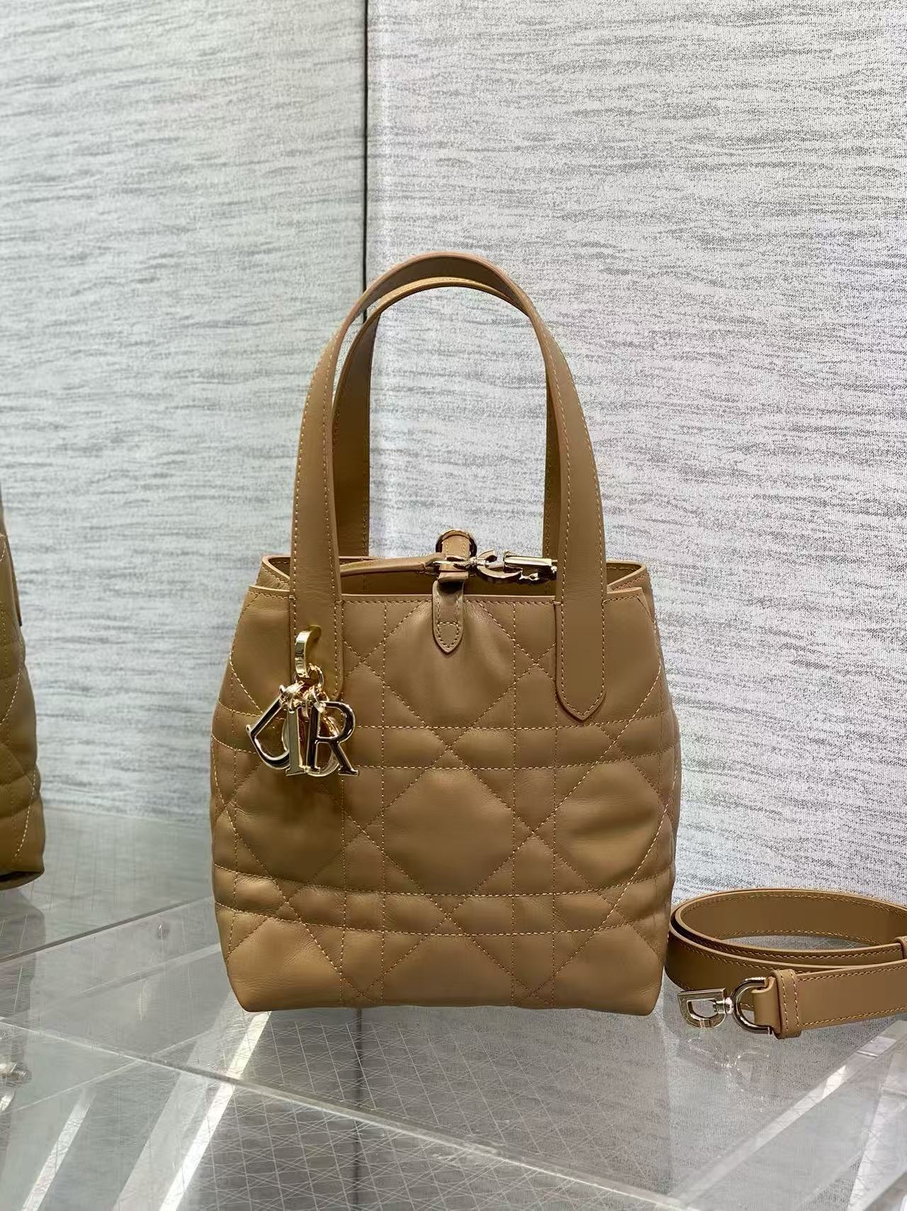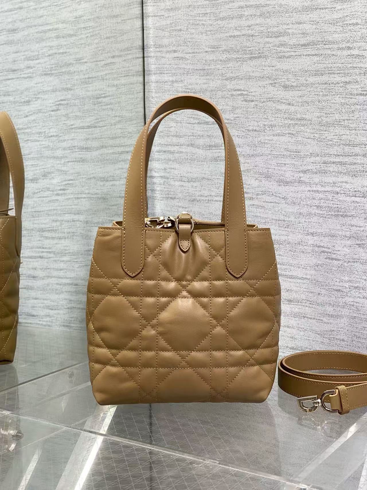 Holds two wallets, a phone, two cardholders, sunglasses, and lipstick