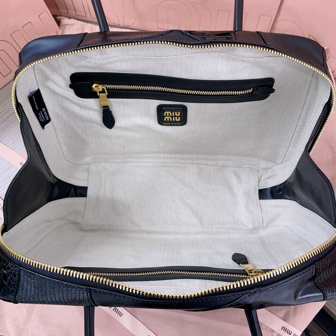 · Linen blend interior with dual zippered pockets